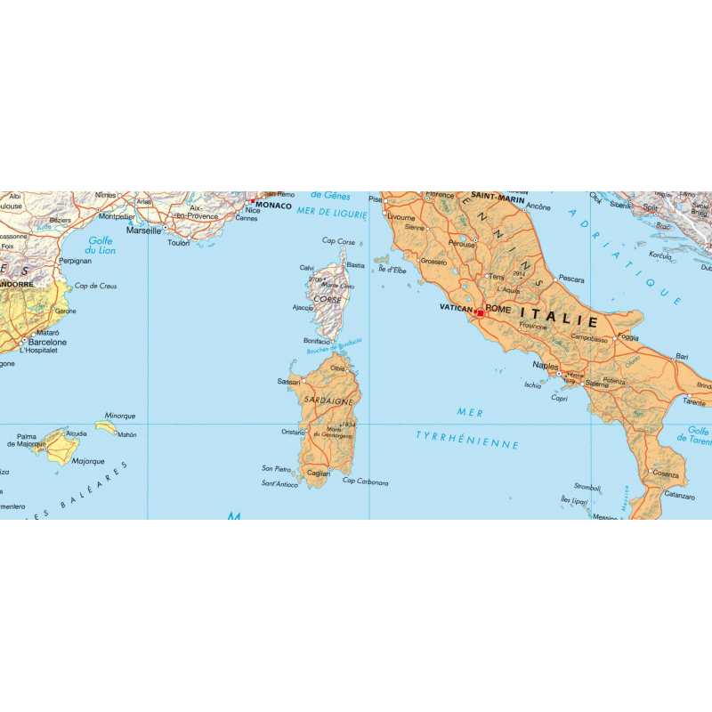 3 fois plus grande que la Corse, elle est une continuité du massif composant l'Île de Beauté. Mais la comparaison s'arrête là. Avec ses reliefs marqués, ils restent toutefois moins élevés qu'en Corse. Les montagnes entrecoupées de vallées et de failles volcaniques culminent à 1800 m au nord et à peine au dessus de 1000 m au sud de l'île.